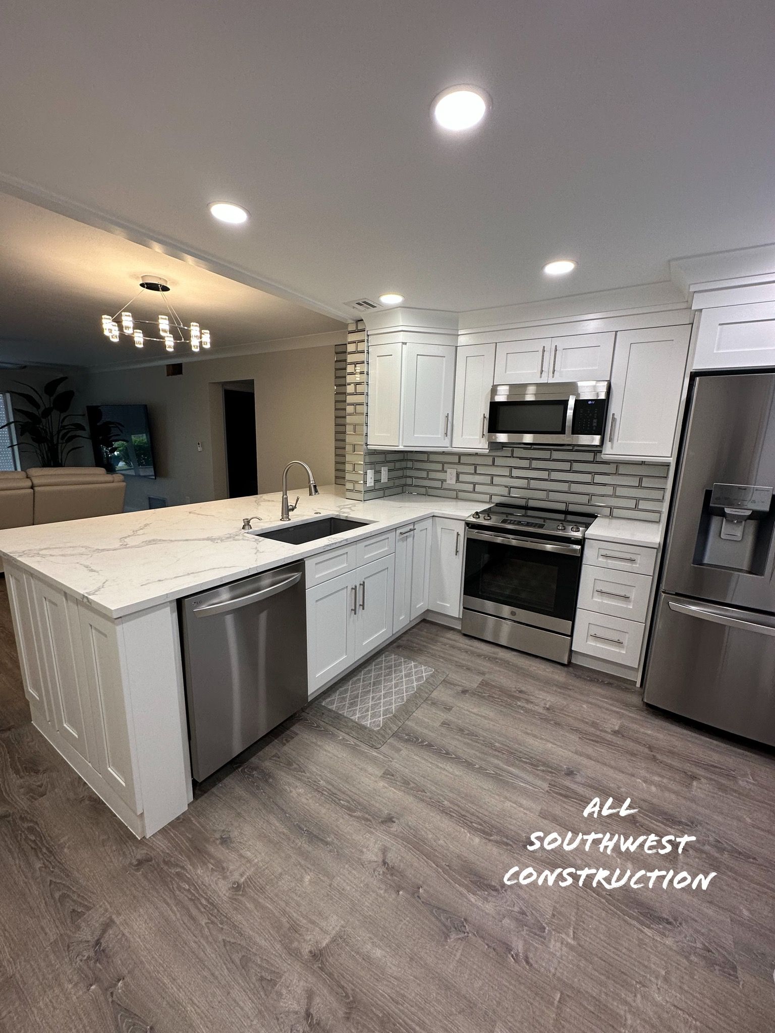 All SouthWest Construction uses thin-set mortar for tile, click-lock systems for luxury vinyl plank, and floating installations for laminate. Each method is chosen based on substrate conditions and material type. Transitions between rooms are sealed with matching trim, and expansion gaps are left around perimeters to accommodate natural movement caused by temperature and humidity changes.
